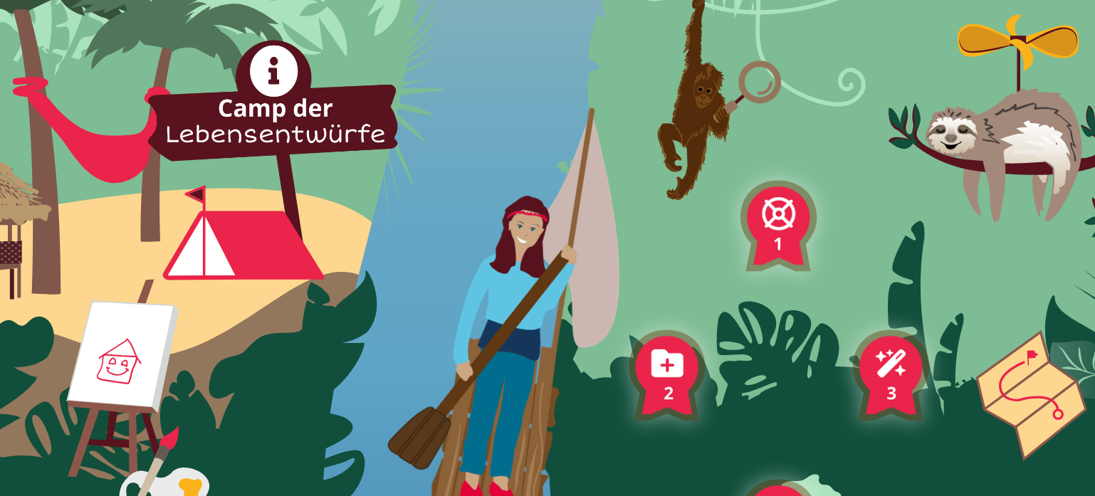 JOLanDA ist eine digitale Anwendung, die sowohl vorbereitend auf als auch ergänzend zu (institutionellen) Angeboten der Berufsorientierung genutzt werden kann. Sie richtet sich insbesondere an Jugendliche, die sich bisher weniger von etablierten Angeboten mitgenommen fühlen. In sechs Trainings können insgesamt 25 Lektionen durchgespielt werden. Im Vordergrund steht das Kennenlernen der eigenen Stärken und Ressourcen sowie die Auseinandersetzung mit Raumfragen (Gehen oder Bleiben?). Durch den modularen Aufbau können die Lerneinheiten in bestehende Konzepte integriert werden.